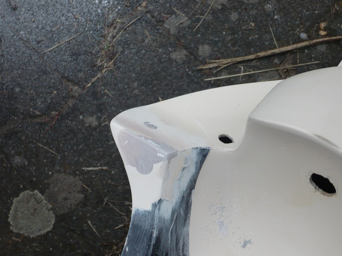 Beim Beilackieren war die Schwierigkeit,daß keine sichtbaren Übergänge zum Gel Coat Farbton entstehen und der Farbton getroffen wurde.